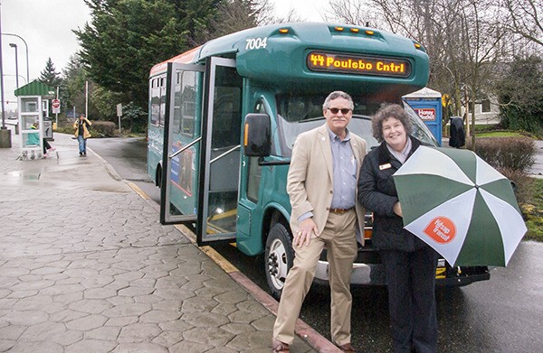 Above: Mayor Becky Erickson checks out the schedule for Route 44, also known as the Poulsbo loop route. Melinda Weer / Herald