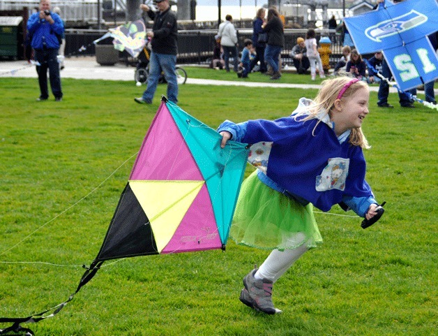But the parents missed their ferry on the other side of Puget Sound. That was OK, however. There was plenty to do at neighboring Mike Wallace Park, where a bevy of kites were soaring through the Kingston sky.
