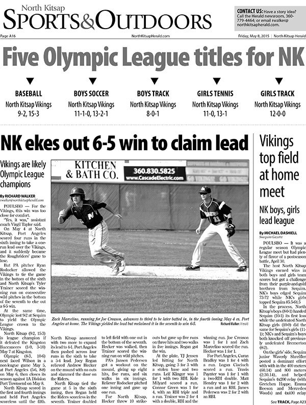 POULSBO — The North Kitsap Vikings won five Olympic League spring sports titles: baseball, boys soccer, boys track, girls tennis, and girls track.