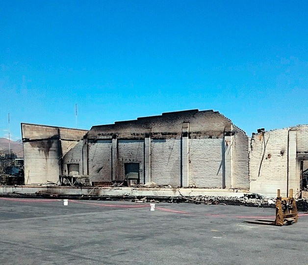 The remains of a fertilizer storage area with by buried with sand to ensure the fire is completely out. Photo provided by Kurt Krech.