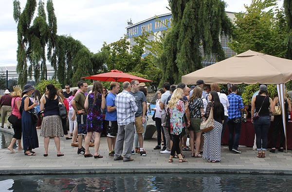 Attendees wait in line for a wine sampling at the seventh Kitsap Wine Festival in Bremerton on Aug. 8.