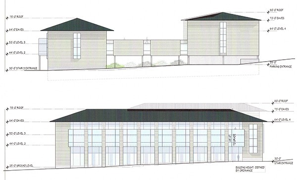 The revised site plan must undergo formal review by the City of Poulsbo. Blue North is under contract with the city to buy the site for $1.2 million, but one of the conditions is that the city will demolish the old city hall and clear the site. “When we get to a certain point where we know we will get a permit, then the city will tear the old building down and we’ll have a permit to begin (new construction),” Laughlin said.