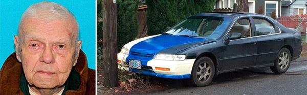 Investigators also are looking for a vehicle of interest in this investigation, a dark green 1994 Honda Accord four-door, with Oregon license 105-DCB. It has blue and white paint on the front. A photograph of the actual vehicle is shown above.