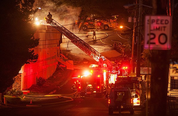 Manette fire displaces 16: BREMERTON — An errant cigarette butt appeared to have caused a 3-alarm fire at Edgewood Villa Apartments in Manette that left 16 people without a home June 22. There were no injuries after the fire rampaged through the top floor of two apartment units. Huge orange flames tore a hole in the center of Building F. A manager on site grabbed a garden hose and pointed it at the fire. Firefighters with Bremerton Fire Department and Central Kitsap Fire and Rescue had it mostly under control by 4:30 p.m.