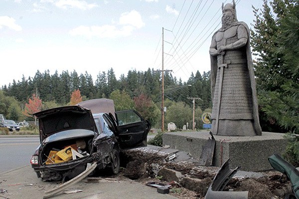 “Car crashes into base of ‘Norseman’ sculpture” (Sept., 22, www.northkitsapherald.com/news/328737681.html)