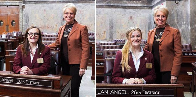 “I always enjoy meeting all the promising young scholars that come through our Senate Page Program. Elise (Carlson) did a great job for us during the fourth week of session,” said Angel, R-Port Orchard.