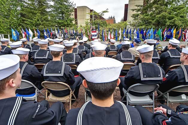 BANGOR — Sailors, veterans and civilians attended the “Tolling the Boats” ceremony hosted by Commander, Submarine Group Nine at Deterrent Park on Naval Base Kitsap-Bangor, May 26.