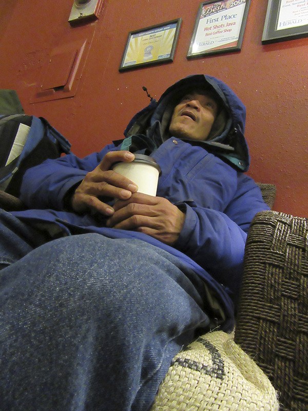 Soft-spoken and polite, savoring a gifted caramel machiatto and breakfast burrito at Hot Shots Java, he shared what it was like to be on the road. He ate slowly, chewed each bit thoroughly, then tucked half of the burrito away for later.