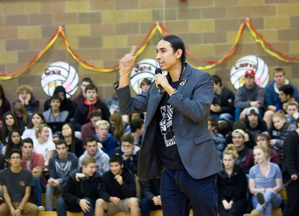 In celebration of Native American Heritage Month, students at Kingston Middle School and Kingston High School enjoyed a visit with the award-winning actor, stand-up comedian and motivational speaker, and learned a valuable lesson about the power of positivity.