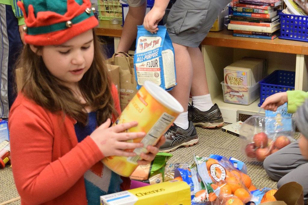 Fifth-graders from The Island School deliver food to Fishline, Helpline House | Holiday Hearts