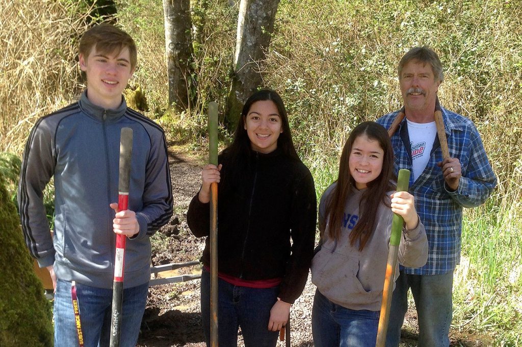 Members of the Kingston High School Interact Club worked with committee member Mark Base on the Nike Park trail in spring 2016. (Carolina Veenstra / Contributed)