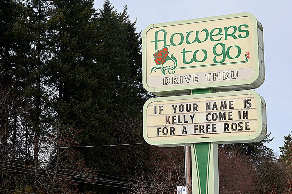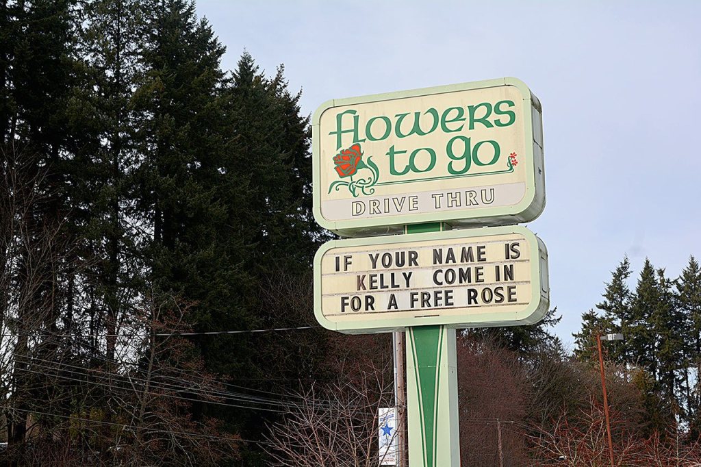 When you drive by the shop, every day the same message will be displayed with a small twist. It’ll read, “If your name is ‘blank’, come in for a free rose.”