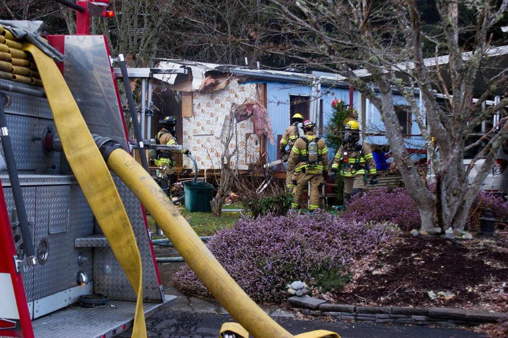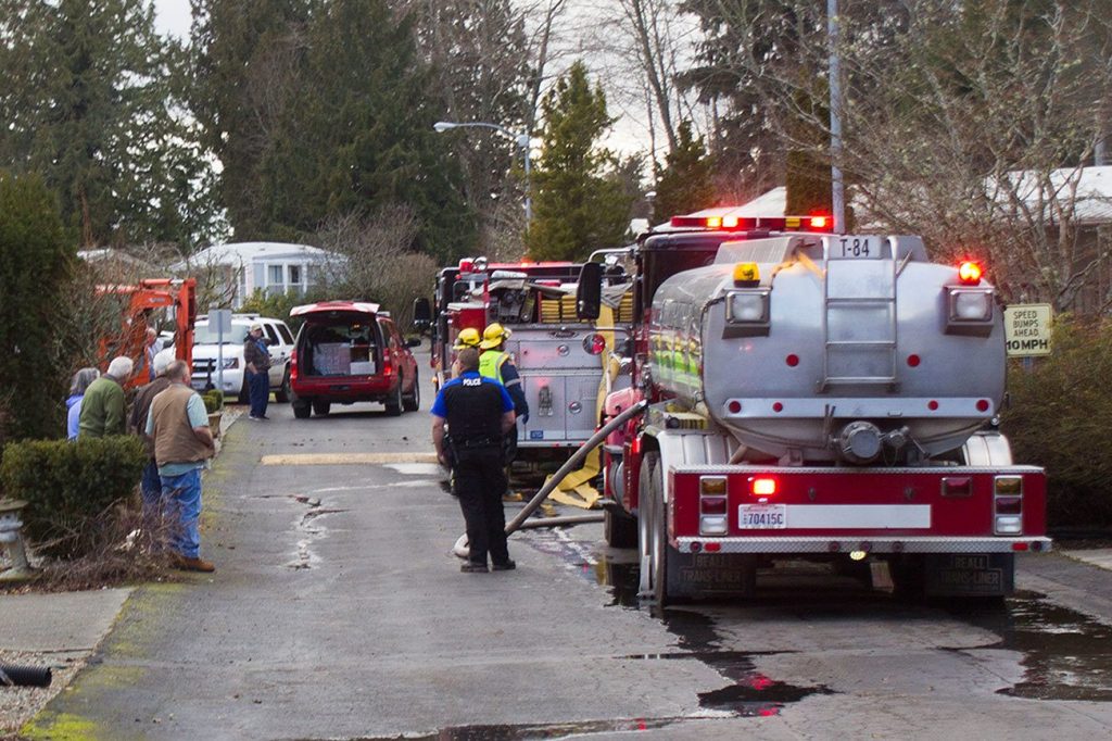 At approximately 3:30 p.m., North Kitsap Fire & Rescue and Poulsbo Fire Department responded to a 9-1-1 call made by Gary Watson, head maintenance facilitator of the park. Watson was working on demolishing a 1970s double-wide mobile home when the fire started.
