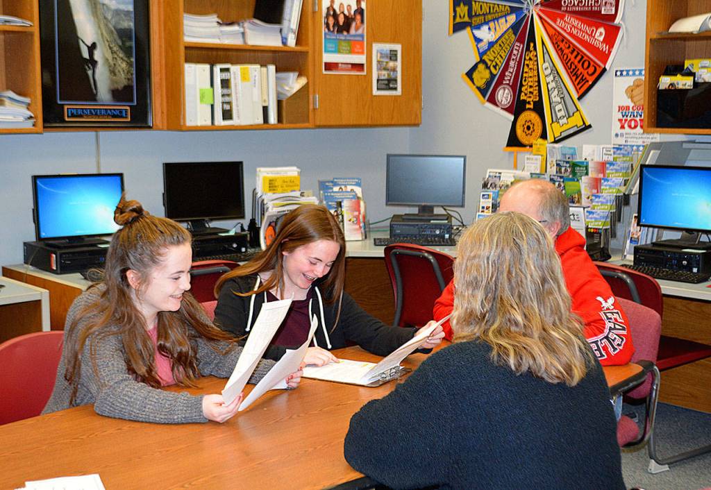 Enter the Career Center at South Kitsap High School: Dave Reichel and Sandy Elton work with students to help guide them through college applications, earning Free Application for Federal Student Aid (FAFSA) and applying for scholarships.