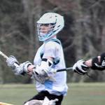 Logan Cole scored the winning goal for North Kitsap lacrosse in the team’s 12-11 overtimewin over Klahowya, March 27 at Strawberry Field. (Richard Walker/Kitsap News Group)
