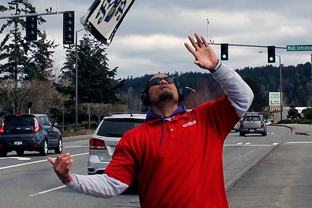 Aliki works for AArrow Sign Spinners in Seattle, whose web page proudly boasts that some of its employees won the 2017 World Sign Spinning Championships. He found the job on Craigslist and has only been working for AArrow for four months, but his goal is to make the championships and the prize money. Besides spinning signs for as much as 32 hours a week, he joins other sign spinners from 3-6 p.m. every Wednesday at Silverdale Waterfront Park to practice.