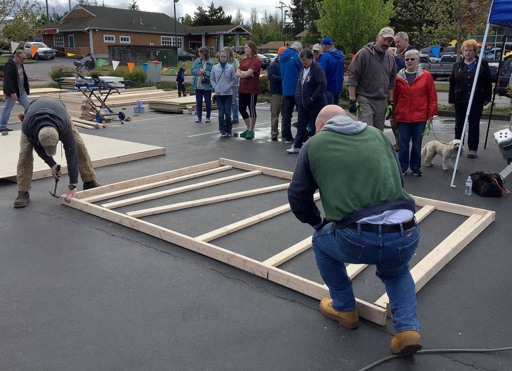 Members of his church, and volunteers from First Lutheran Church in Port Orchard, made up the bulk of the work party, Blair said. They partnered to build the three structures. Nine more will be constructed in the near future to form a small village.