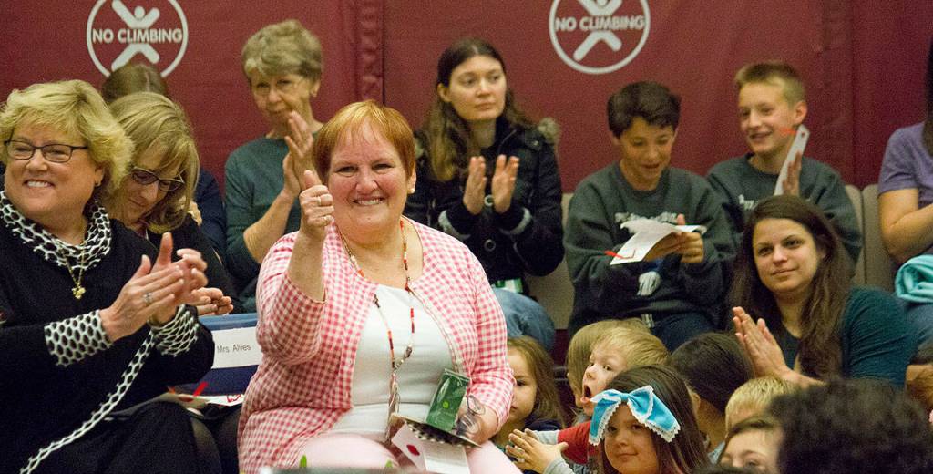 Alves’s six-year-old granddaughter Rian Hager, a first-grade student at Poulsbo Elementary, opened the assembly by leading the Pledge of Allegiance. Alves’s friend, retired teacher Suzanne Wistrand, followed, talking about her experience with Alves while working in NKSD.
