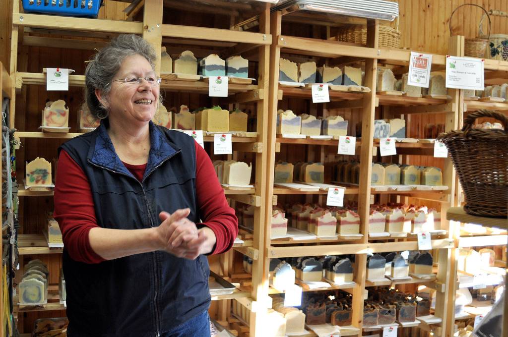 The company reuses ‘like-new’ baskets, refills ink cartridges instead of buying new ones and reclaims wood from shipping pallets to make soap molds, soap decks and curing racks.