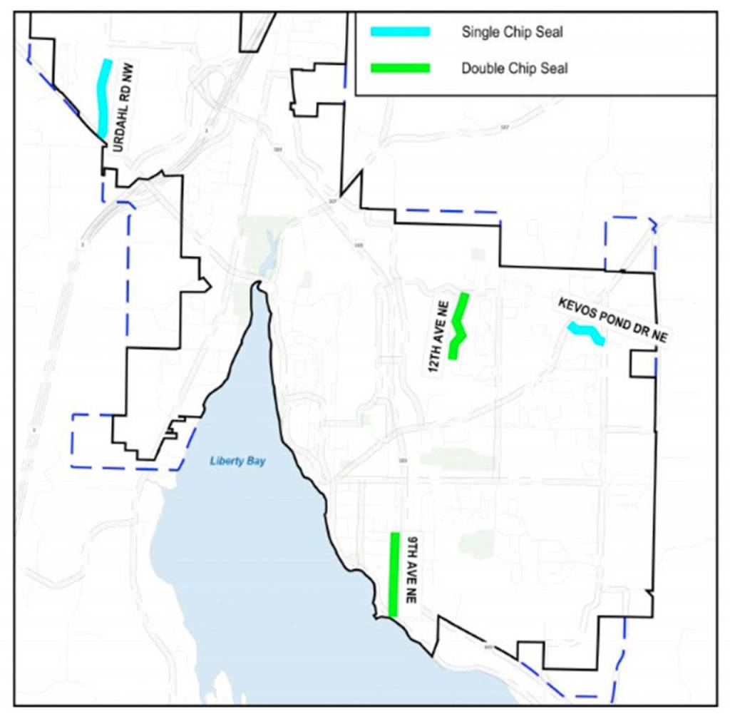 The Pavement Maintenance Demonstration Project demonstration sites are on 9th Avenue NE, 12th Avenue NE, Kevos Pond Drive NE, and Urdahl Road NW. (City of Poulsbo/courtesy photo)