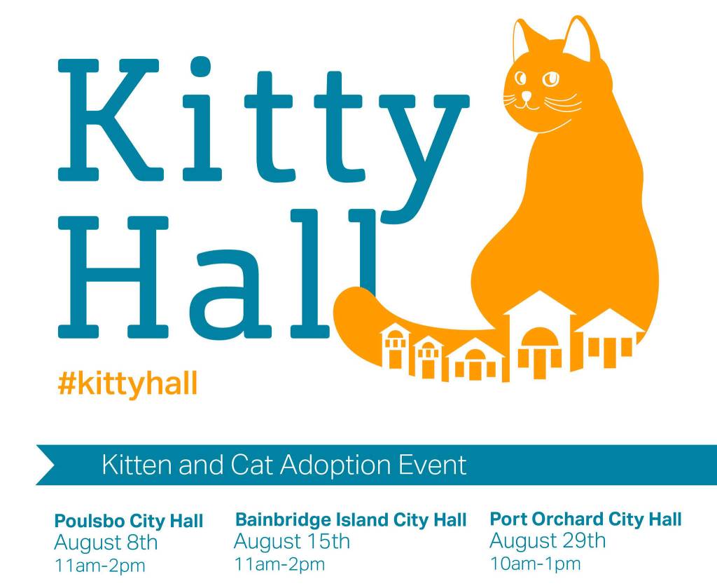 Kitsap Humane Society is holding “Kitty Hall” for the first time ever in Port Orchard, Poulsbo (11 a.m. to 2 p.m. Aug. 8) and Bainbridge Island (11 a.m. to 2 p.m. Aug. 15).