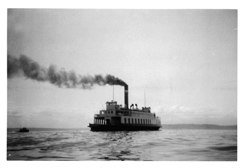 She was originally a side-wheel steamer on Lake Washington but was a propeller-driven diesel by the time she migrated to the salt chuck. Her last run was Palm Sunday of 1968 at Edmonds-Kingston.