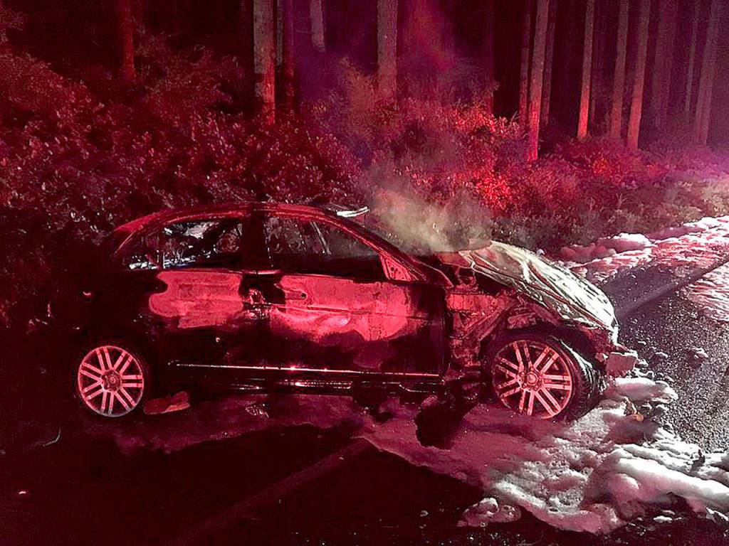 Tire marks on the fog line east of Toad Road indicated the vehicle began to leave the roadway, compelling the driver to overcorrect his steering, which sent the Mercedes across the centerline and into the westbound lane of travel, according to Kitsap County Sheriff’s spokesman Scott Wilson. The vehicle then left the road and propelled into brush and dirt on an embankment. It then rolled over several times, churning up dust, at around 11:36 p.m.