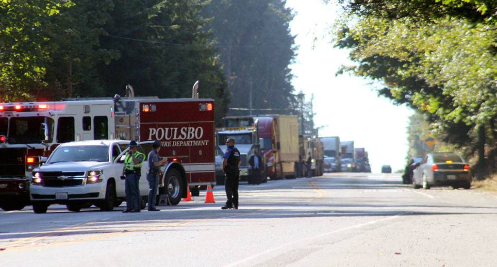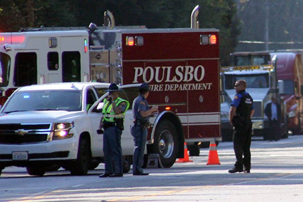 “Basically, [the motorcycle] was traveling toward the Hood Canal Bridge, the car was traveling toward Poulsbo,” Washington State Patrol Sgt. Scott Gordon said at the scene. “At this point, it looks like the car crossed over the double-yellow center line and hit the motorcyclist.”