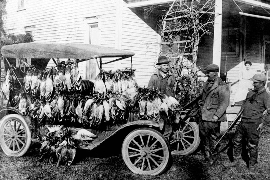 Commercial market hunters were slaughtering some 5 million birds every year to supply feathers for the hottest fashions in women’s hats. There was also an old holiday tradition called the Christmas “Side Hunt,” when teams competed to see who could shoot the most birds and small game in a single day. They would then pose for photographs by wagons heaped with dead birds and small mammals.