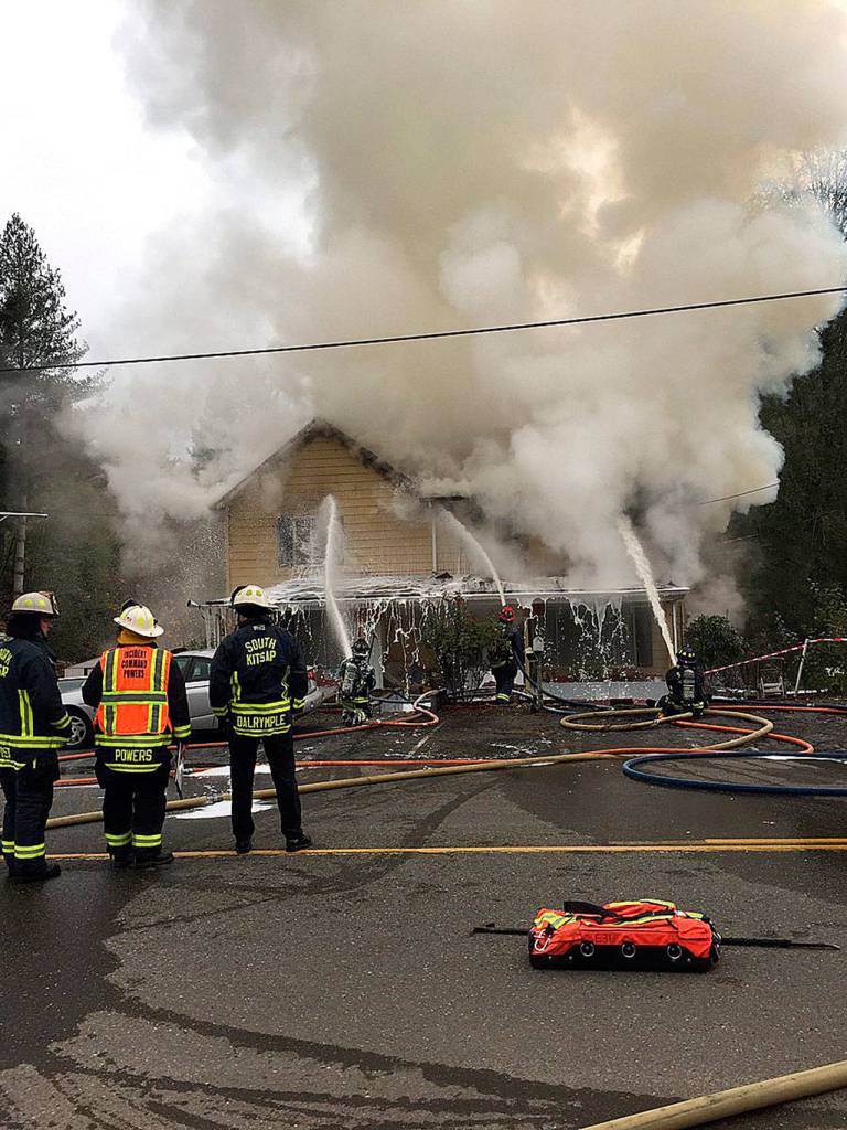 South Kitsap Fire and Rescue units responded to a call for aid at around 11:30 a.m. Bremerton Fire Department assisted to douse the flames, which reportedly started on the second floor, said a neighbor who witnessed the fire in its early stages. The neighbor reported the home’s occupants safely escaped the burning structure and were uninjured.