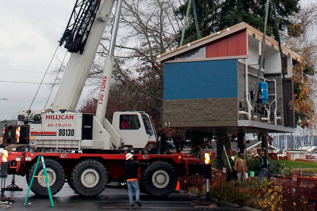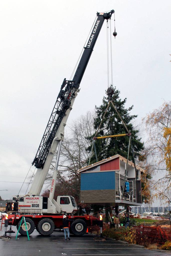New restrooms arrived at Poulsbo’s Muriel Iverson Williams Waterfront Park on Nov. 20 and city officials say they predict the restrooms will be open in time for Julefest on Dec. 2.
