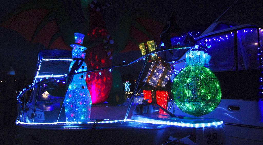 The festival along Bay Street is in its 19th year. It’s become part of the Port Orchard landscape in December — lights strung on downtown buildings, boats in the marina, and on trees and bushes. Wreaths are hung on business doors and windows are frosted, emblazoned in splashes of red, white and green paint.