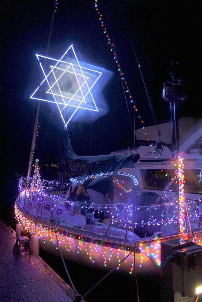 Down on the dock, illuminated boats shined. This year’s winner of the Kingston Cove Yacht Club boat-decorating contest was Joseph Charnes and his boat, Aurora, which sported an enormous Star of David from the mast. Tom Pickens’ boat Lulu II was also selected as one of the most beautiful on the water as well, with an illuminated inflatable reindeer on top of the cabin and bow. Pickens referred to his vessel as “Rudolph the red-nosed tugboat.”