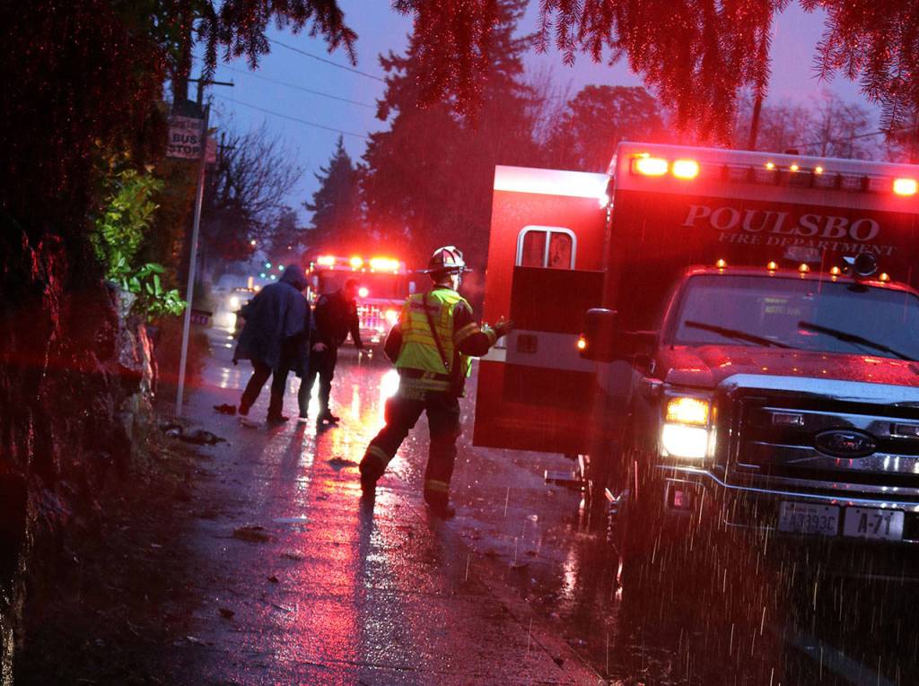 The person struck by the vehicle, a 63-year-old woman, was taken to Harrison Medical Center in Bremerton with what appeared to be critical injuries, Poulsbo Fire Department spokeswoman Jody Matson reported.