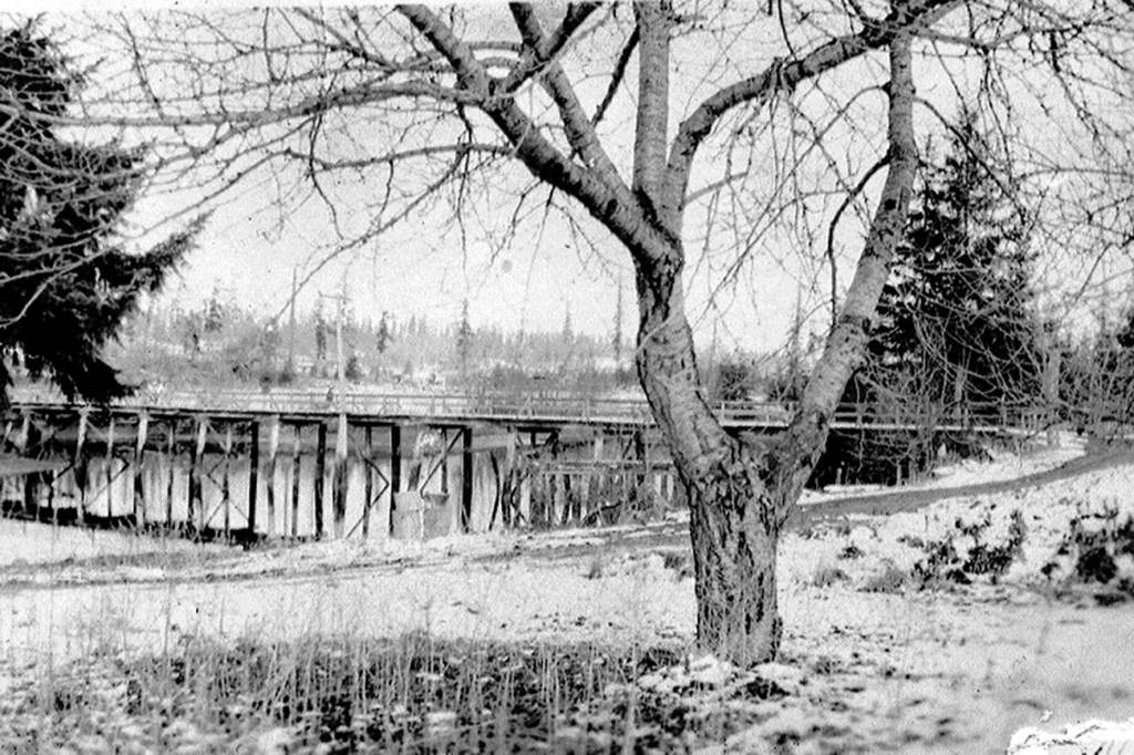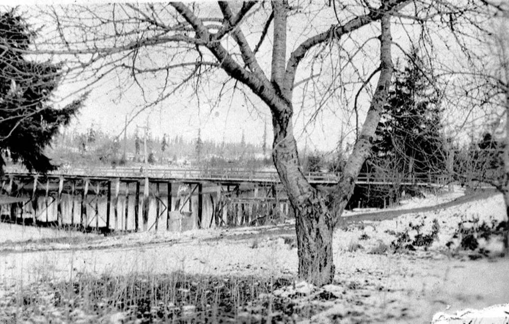 Research suggests this road dates to 1907 when Christian Henry Braendlein built the “Silverdale to Tracyton bridge” (probably over Clear Creek). Braendlein, who worked on roads and was a road supervisor, completed the bridge on Oct. 12, 1907 (Perry 1977a:88). No historical photographs or additional references were obtained to determine if the original road included an actual bridge rather than the existing rock fill and large culverts.