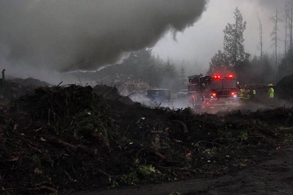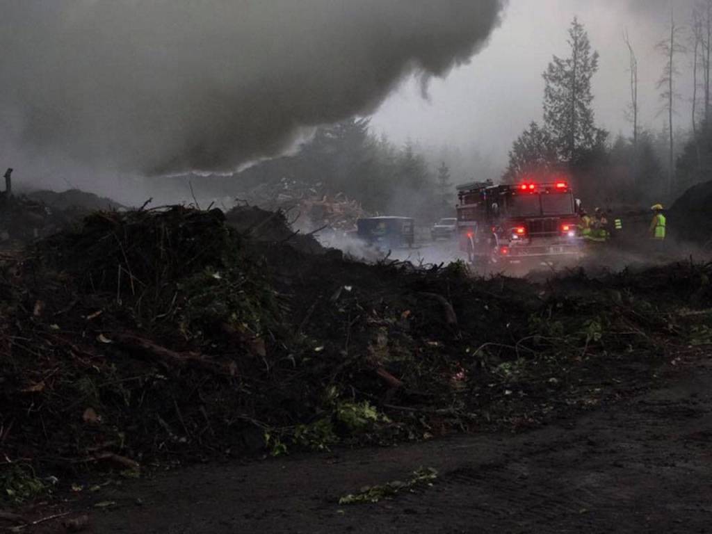 North Kitsap Fire & Rescue firefighters had contained the stump pile fire around noon, but reported that the fire was “stubborn,” so firefighters would likely be on scene throughout the day.