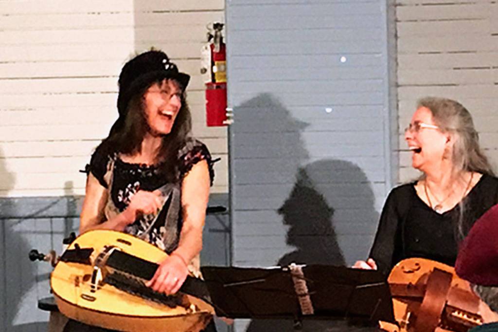 Other strings on the instrument are called “drones.” Not coincidentally, that is the nickname Opland and Dale gave to their husbands. The “Drones” were called up to the stage after the hurdy-gurdyists played a few songs together. And the crowd heard more than just music — something which Freeman said is typical of the Strompettes’ performances.