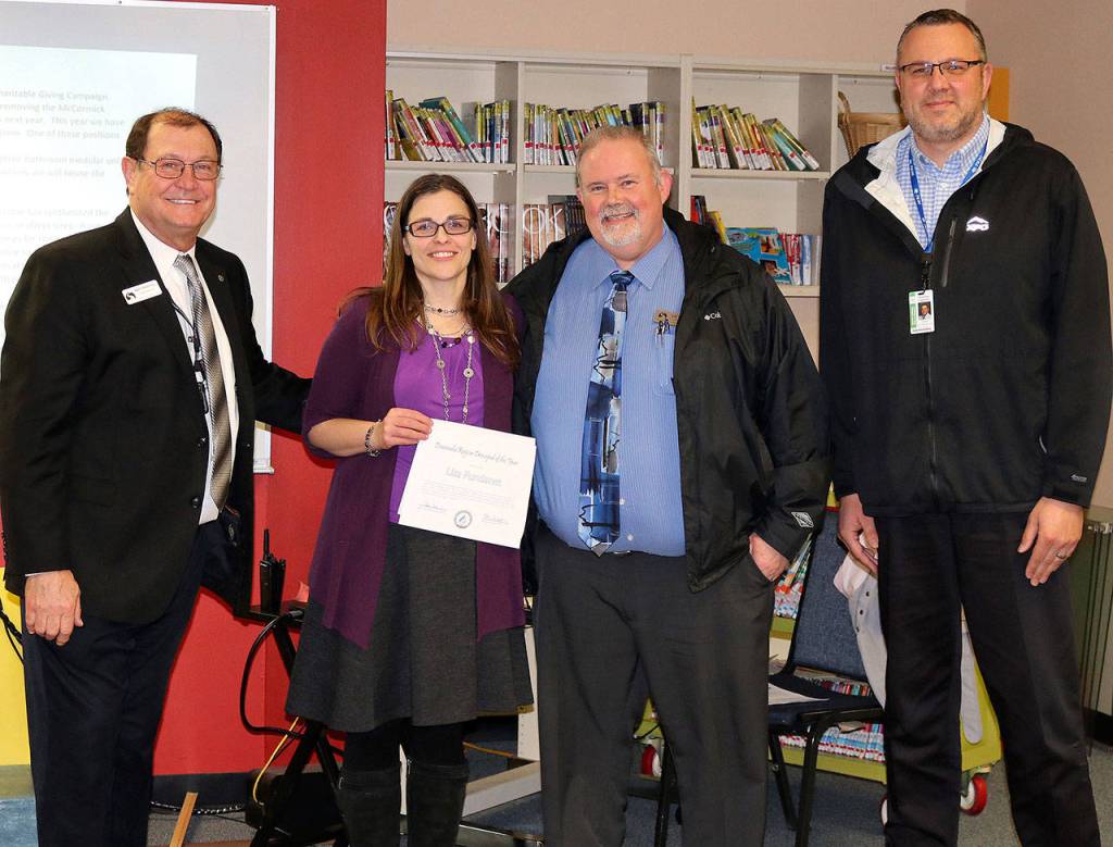 According to South Kitsap School District spokeswoman Amy Miller, Fundane’t was surprised during a March 14 staff meeting with the award by Karst Brandsma, the district superintendent, Assistant Superintendent Jay Villars and ESPAW Regional Director Chris Visserman.