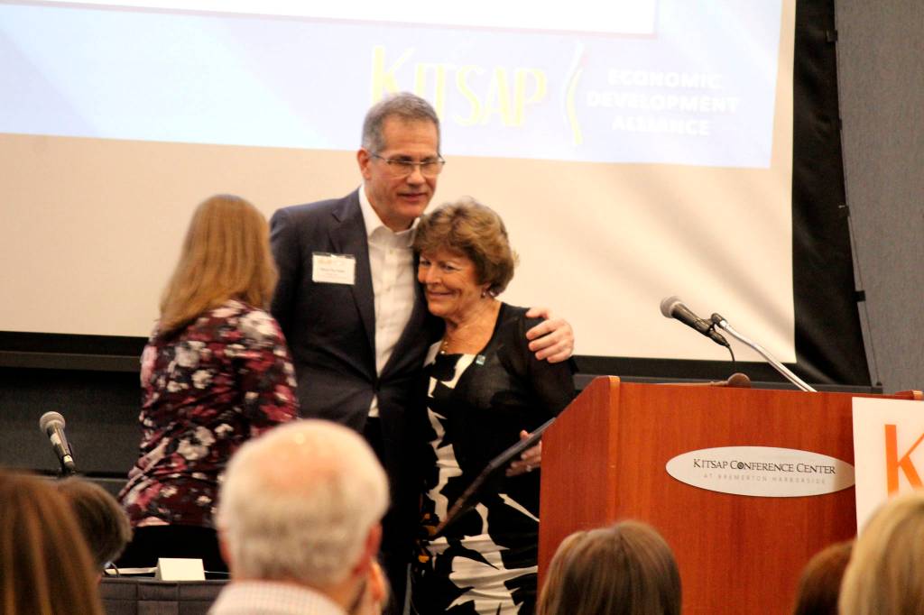 BREMERTON — At the March 30 Kitsap Economic Development Alliance meeting, former Bremerton Mayor Patty Lent was in the spotlight once more as the organization presented her with quite a “humbling” honor: an economic development lifetime achievement award for the public sector.