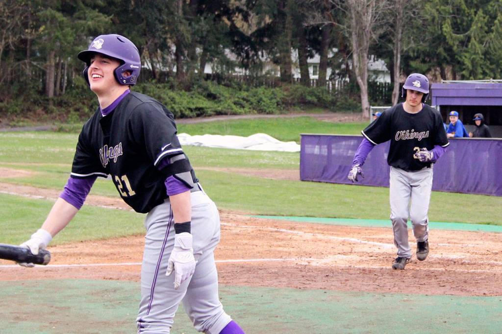 North Kitsap’s first 13 batters reached base during that lengthy inning, eventually scoring 12 runs en route to the 17-3 victory. And much of the damage was done in two swings off the bats of Peter Klos and Kyle Green.