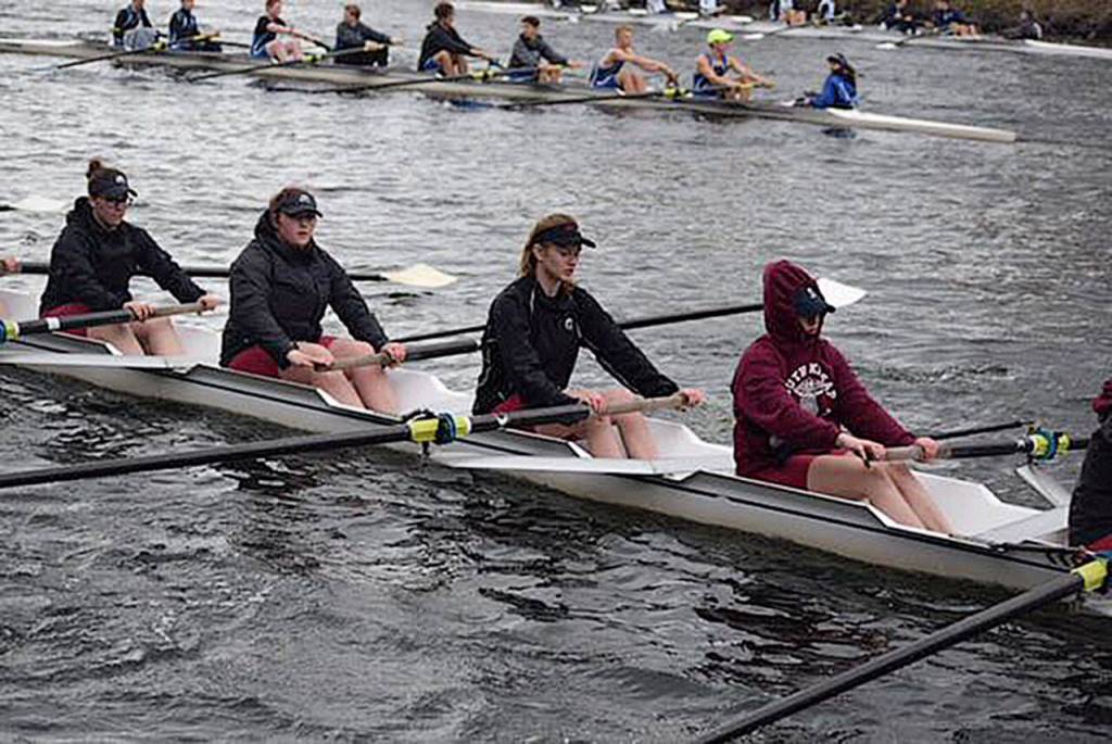 The open eight-man race featured a South Kitsap win with a time of 6:48. The SK men’s novice crew was between 10 to 12 lengths behind, followed by a crew from Olympic Peninsula Rowing. In the open eight-woman race, the Wolves’ varsity crew won by half a boat’s length ahead of second-place finisher Olympic Peninsula. The SK novice eight trailed behind.