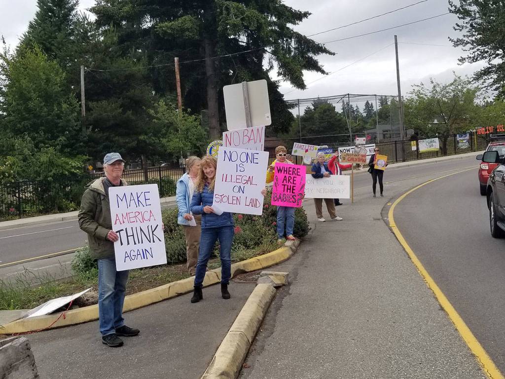 KINGSTON — As Washington State Patrol troopers handed out boarding slips at the Kingston ferry crossing Sunday, citizens demonstrating against President Donald Trump’s forced separation illegal immigrant families were assured the attention of many commuters.