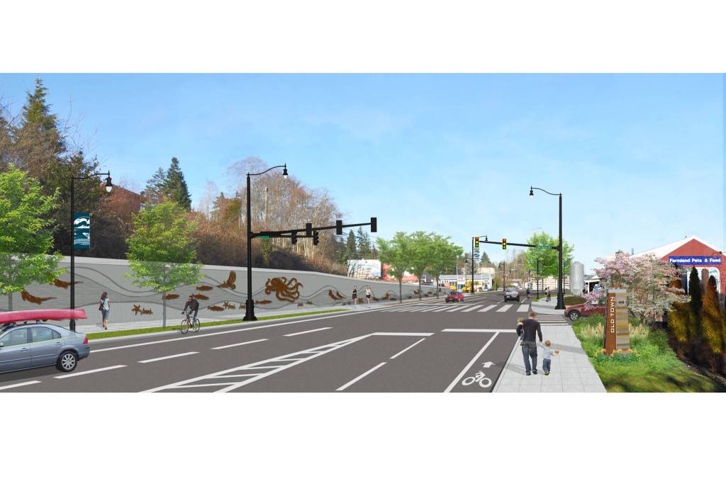 Continue to expect alternating one-lane traffic on Silverdale Way throughout the projects limits. The southbound shoulder on Silverdale Way between Lowell and Byron Streets will remain closed while workers install forms for the decorative art work on the west side retaining wall. There will also be closures on Byron Street and Pacific Avenue while sidewalks are completed.
