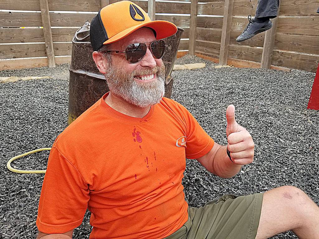 While the task was never something that the teachers managed to complete, it was not for a lack of effort. While holding the drum as his other team members climbed up the bridge, online credit recovery teacher Chris Korbel lost his balance and fell from the perch. The 55-gallon drum he was resting on his lap beat him to the ground. Korbel’s face hit the drum as he fell, splitting open his chin. Despite a steady trickle of blood from beneath his beard, Korbel was in good spirits, smiling and joking with the Navy corpsman treating his wound.