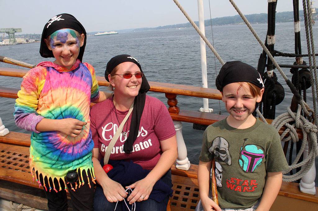 Some of the passengers aboard both vessels — many of them children — donned attire befitting seafaring pirates. And a few of them were lucky enough, despite their craven clothing giveaway, to be asked to help out with the lines.