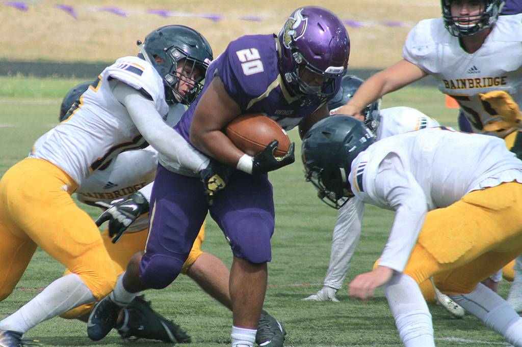 Max McLeod scored a two-yard touchdown on an option pitch to cut the deficit to 12-10. Just before halftime, Gannon Winkler aired one out and hit McLeod in stride in the end zone for a 41-yard score to give Bainbridge a 17-12 lead. Winkler threw for 113 yards, and McLeod caught three passes for 77 yards.