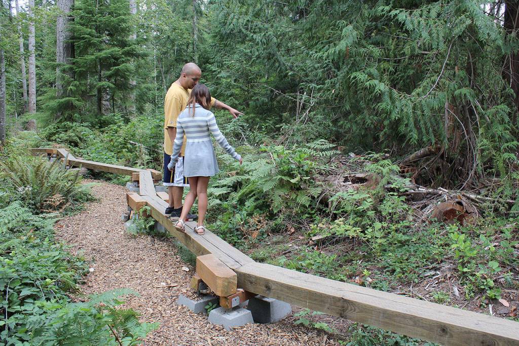 After seeking out answers from park visitors who fit that age group — and asking volunteer members from South Kitsap High School’s track team for their opinions — the solution was to create small “play stations” where youngsters could climb, balance and explore on the trail — and just off the beaten path.