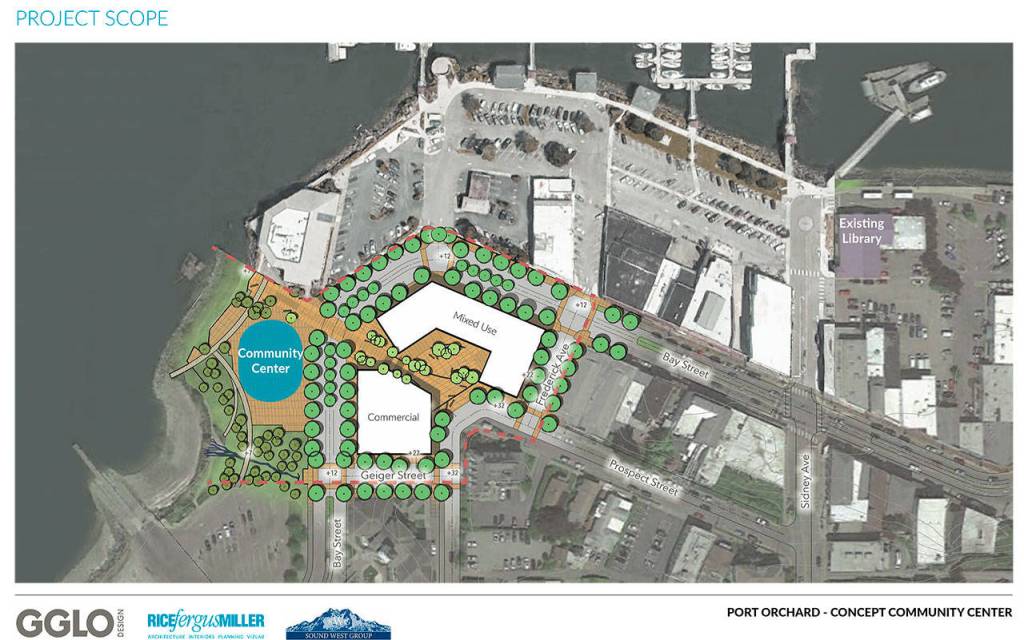 Steve Sego, who is part of Sound West Group, the primary project partner in the effort, said the group is proposing a design concept that would eventually include 445,000 square feet of new building space costing about $150 million that would include its planned multi-use commercial building project at 640 Bay St. But the signature piece of the newly proposed project would include the community center, which would house the Kitsap Regional Library’s Port Orchard branch. The library space was initially part of the old 640 Bay St. building design.