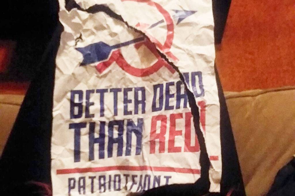 It was not the first time signs espousing white nationalism surfaced in Bremerton. Last year, Patriot Front posters were spotted at Olympic College, former student body president Shannon Turner told the Kitsap Sun, prompting the college to change their policies regarding fliers from off-campus groups.