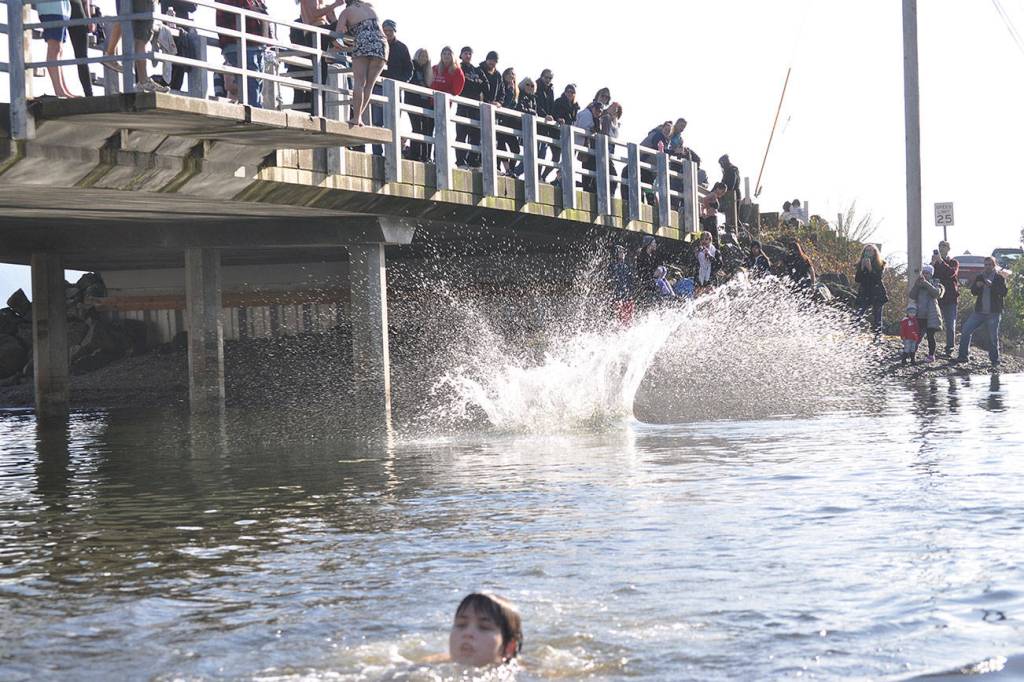 After the blast of a cannon heralded the commencement of the plunge, participants began leaping from the Olalla Bridge to the frigid waters below. Those who took the plunge were awarded with certificates showcasing their steely resolve and admittance into the Olalla Polar Bear Club.